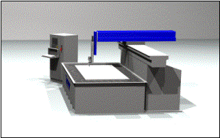The support structure is a steel welded structure which supports the X, Y, and Z axes. The support structure also acts as a housing for the pump to decrease the footprint size of the system and to protect the pump from the water and abrasive.