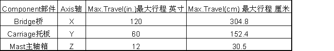 悬臂可完全从加工区域收回 以允许全方位接近切削台。悬臂的 X和Y轴由伺服电机驱动,Z轴由电机驱动。每个轴的驱动都是由双滚珠丝杠来完成。